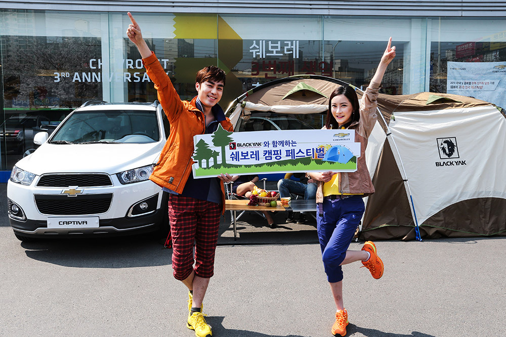 국내 도입 3주년을 맞은 쉐보레 브랜드가 본격적인 아웃도어 활동의 시즌을 맞아 4월 1일부터 5월 31일까지 두 달간 국내 유명 아웃도어 브랜드인 ‘블랙야크와 함께하는 쉐보레 캠핑 페스티벌’을 개최한다.