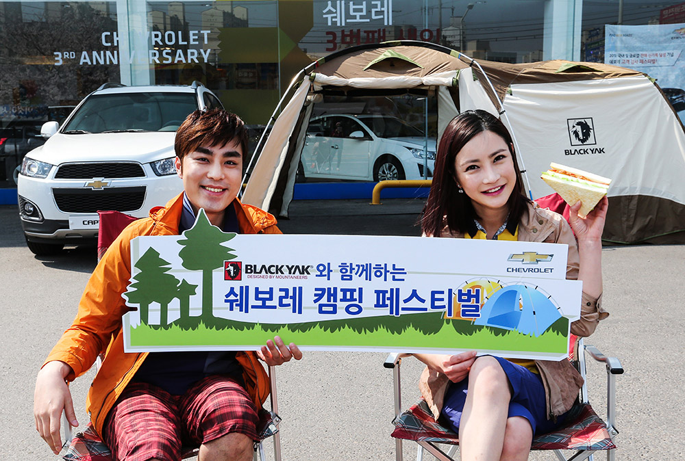 더불어, 쉐보레는 히말라얀 오리지널 아웃도어 브랜드 블랙야크와 공동으로 ‘캠핑 경품 페스티벌’을 진행, 캡티바, 올란도, 트랙스 등 쉐보레 RV 출고 고객 및 구매 상담 고객을 대상으로 4월 1일부터 5월 31일까지 두 달 동안 90만원 상당의 블랙야크 텐트 총 40동을 상품으로 지급한다.