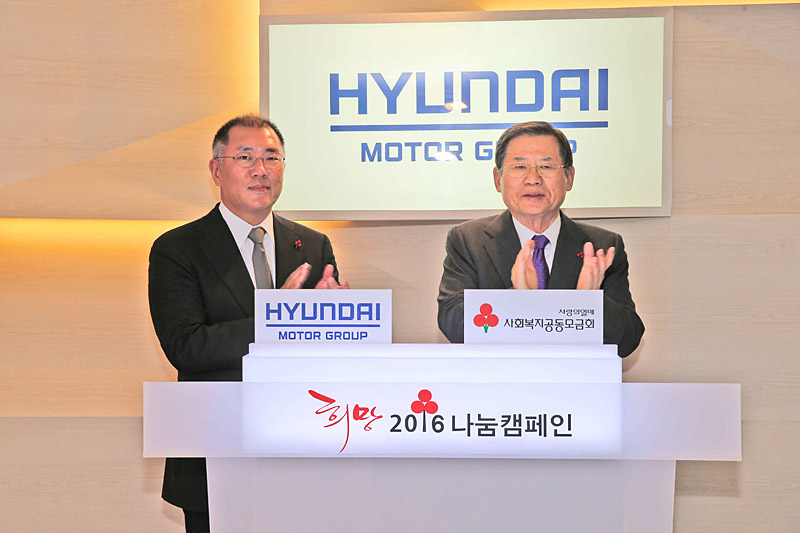 특히 현대차그룹은 사회복지공동모금회의 ‘희망 2016 나눔캠페인’ 모금이 시작되는 첫날 1호로 기부금을 전달했으며, 2003년에 시작하여 13년간 사회복지공동모금회에 기탁한 총액은 1,840억원이다.