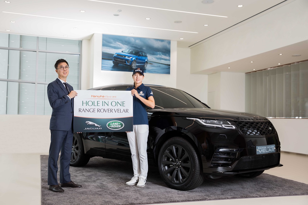 재규어랜드로버코리아(대표 백정현)는 한화클래식2018에서 홀인원을 기록한 이정민 선수에게 상품으로 럭셔리 중형 SUV 레인지로버 벨라를 지난 19일 전달했다고 밝혔다.