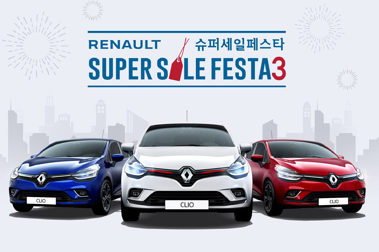 유럽이 사랑한 르노(Renault)의 소형차, ‘클리오(CLIO)’를 구매하는 고객을 위한 특별 이벤트 ‘슈퍼 세일 페스타3’가 오는 11월 30일까지 진행된다.