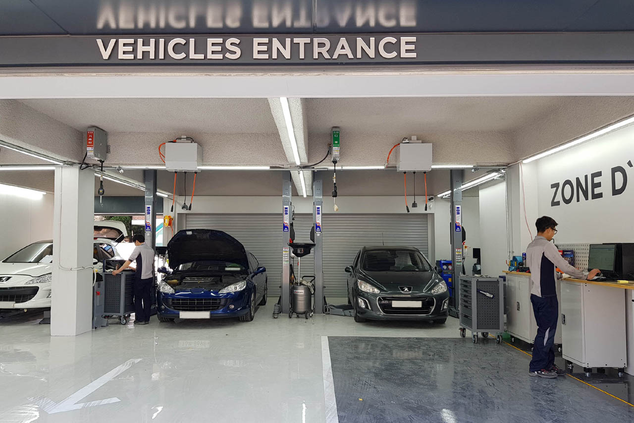 1층에 위치한 푸조 시트로엥 강서 서비스센터는 5개의 워크베이와 첨단 장비, 뛰어난 기술력을 갖춘 전문 서비스 테크니션을 갖춰 월 평균 600대의 차량 정비가 가능하다. 지하 1층은 대기 고객을 위한 넓은 라운지와 PC존, 키즈존, 출고 차량을 전달하는 딜리버리 존 등을 마련했으며, 총 10대의 고객 주차 공간을 마련해 고객들의 편의를 높였다. 특히, 불과 10분 거리에 위치한 푸조 시트로엥 부천 서비스센터와의 통합 운영을 통하여 일반 정비 외에도 판금, 도장 등 중정비와 사고 차량 수리까지 제공한다. 또한, 푸조 시트로엥 브랜드 최초로 김포공항을 이용하는 서비스센터 고객에 대하여 픽업 및 딜리버리, 주차를 비롯한 에어포트 서비스를 제공한다.