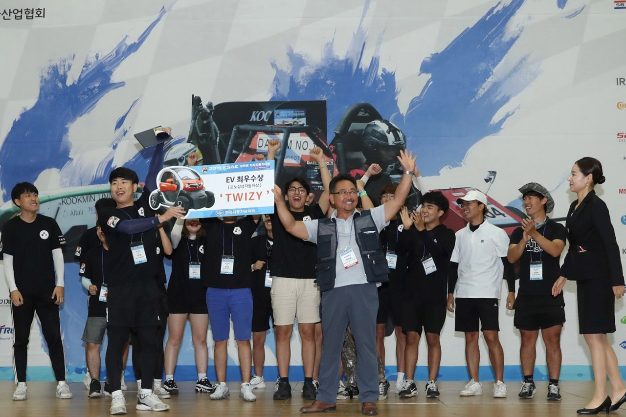 르노삼성자동차는 미래 자동차 엔지니어와 디자이너의 꿈을 키우는 전국 대학생을 응원하고, 더 나아가 국내 자동차 산업 발전에 기여하고자 이번 대회의 공식 후원사로 참가했다. 특히, 한국자동차공학회 부회장이자 대회 조직위원장인 르노테크놀로지코리아(RTK) 권상순 연구소장은 EV(전기차) 부문 최우수상을 차지한 서울과학기술대학교 ‘MIP’팀에게 초소형 전기차 ‘르노 트위지’를 직접 수여하며 격려를 아끼지 않았다. 르노 트위지는 가정용 220볼트 전기로 약 3시간 30분이면 완전 충전이 가능하며 최대 80km를 달릴 수 있는 새로운 개념의 초소형 전기차다.